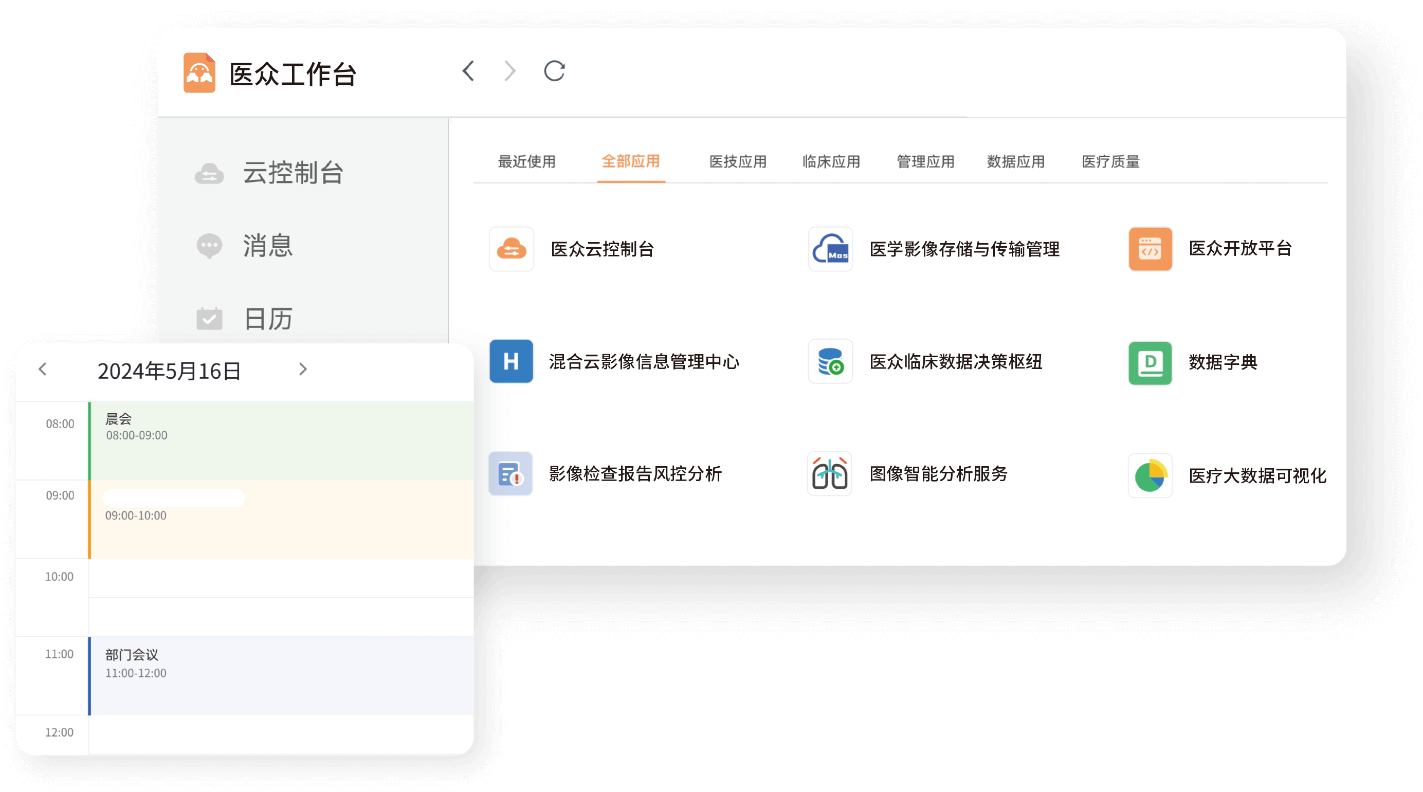 醫(yī)眾工作臺是承載醫(yī)眾全部數(shù)據(jù)能力與功能的應(yīng)用框架,采用 Docker 技術(shù)進(jìn)行分布式部署。每一位用戶都擁有完整且獨立的云端節(jié)點。